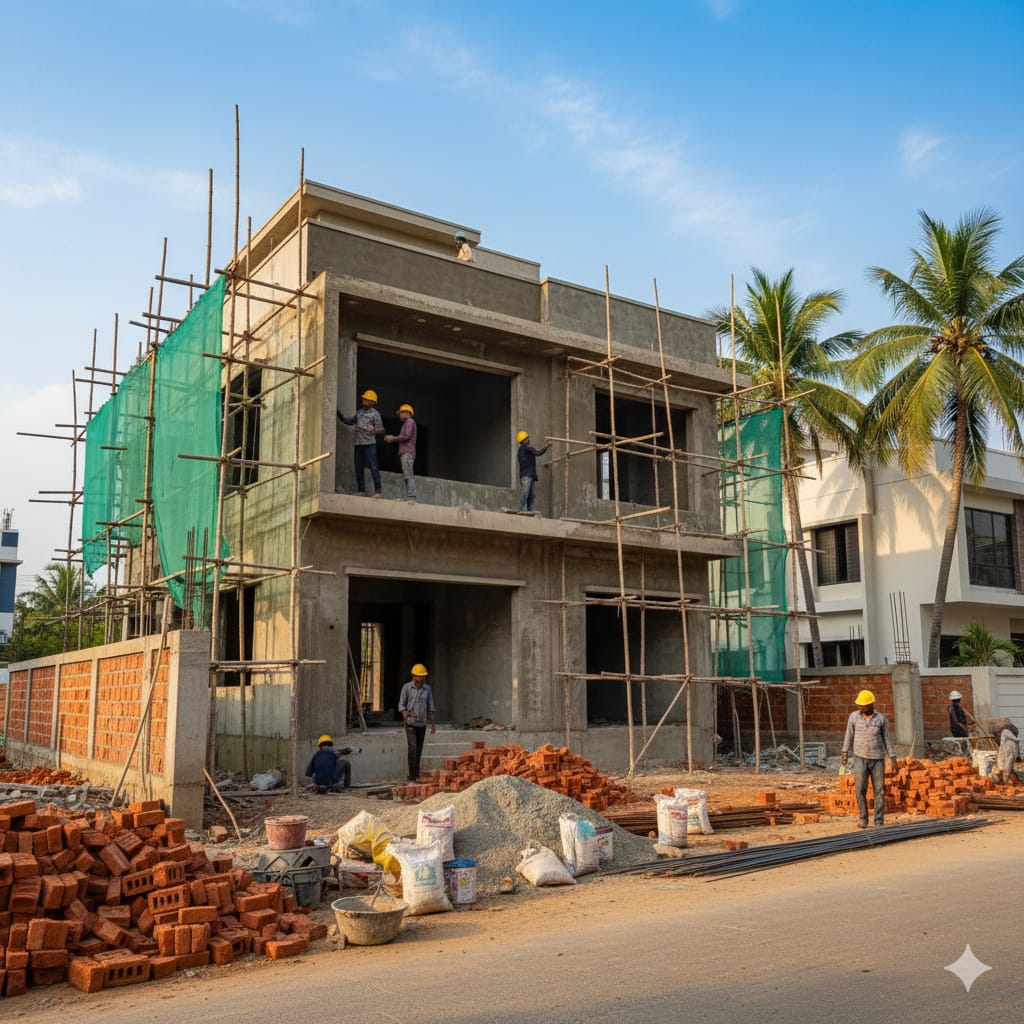 A standard independent house (approx. 2,000 sq. ft.) usually takes 8 to 12 months from foundation to handover. Factors like monsoon seasons, labor availability, and the complexity of the architectural design can influence this timeline.